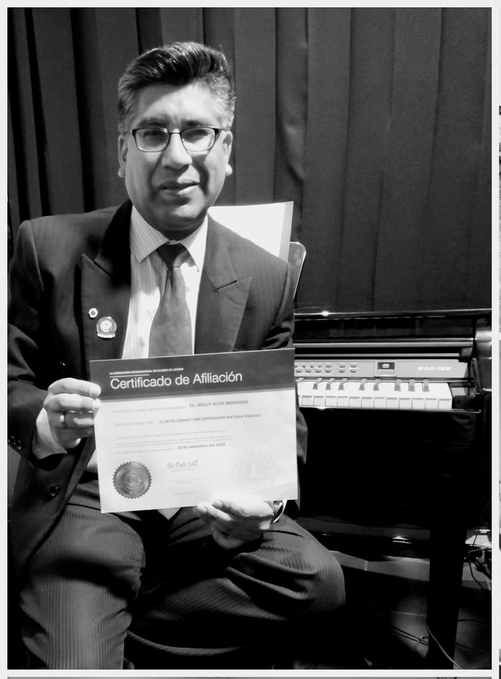 Fui juramentado en el Club de Leones Lima Centenario Matiaza Rimachi el 24 de septiembre de 2023, en Lima, siendo amadrinado por mi hermana la León Milka J. Silva.